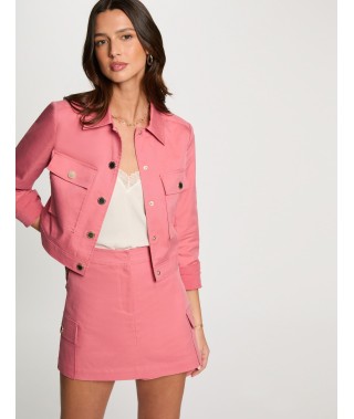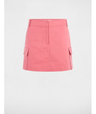 Falda pantalon corto de color rosa. Corte ajustado. Cierre de cremallera en la parte delantera. Trabillas en la cintura. Dos bolsillos de solapa cerrados por un botón en los lados.
