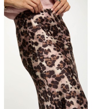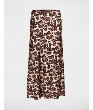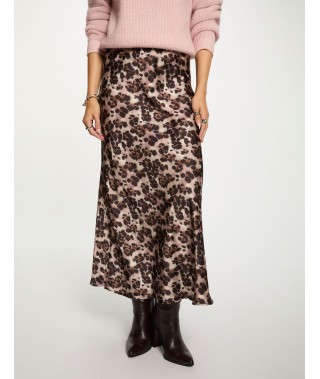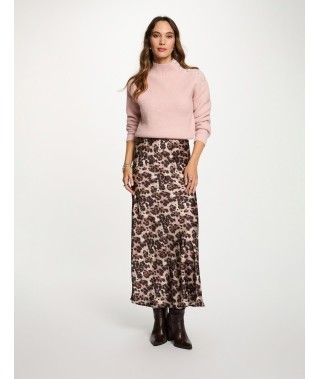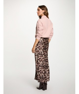 Falda larga midi con corte ajustado de color rosa con estampado. Talle estándar.