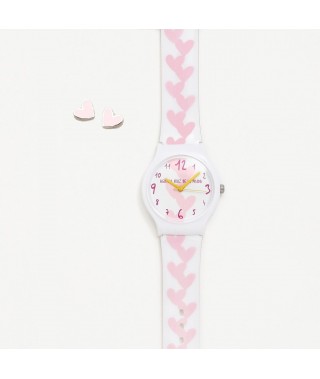 Reloj y pendientes de mujer y niña pequeño con corazón rosa
