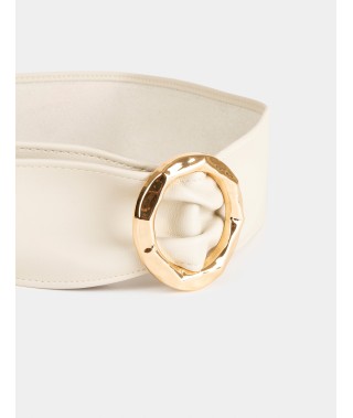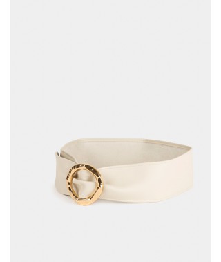 Cinturón de mujer con hebilla redonda color beige