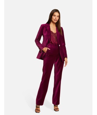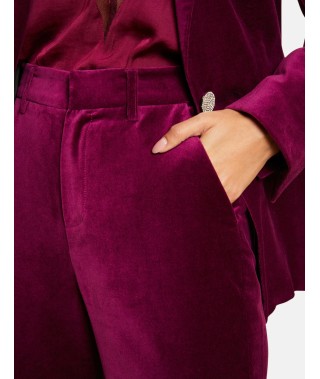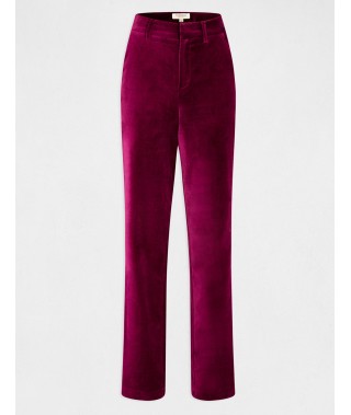 Pantalón de mujer recto de talle alto terciopelo rosa
