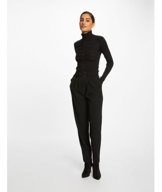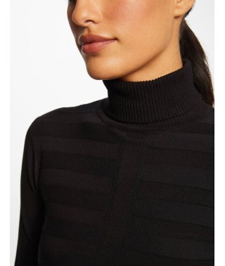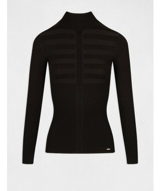 Jersey de manga larga de punto fino acanalad de color negro. Corte ajustado. Cuello tortuga.