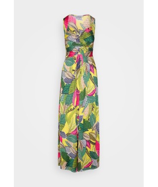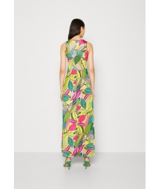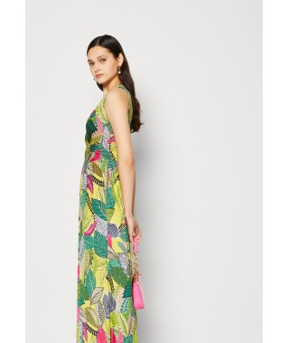 Vestido de mujer largo de tirantes con estampado vegetal color verde