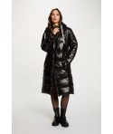 Bolso tipo bandolera de cadena acolchado de color verde. Asa de cadena. Solapa con hebilla, con cierre con un botón de presión y efecto acolchado.