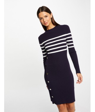Vestido de mujer de punto ajustado con botones de rayas color azul marino