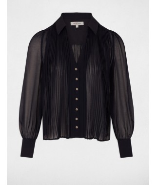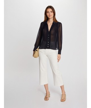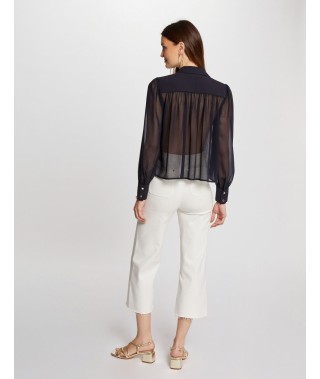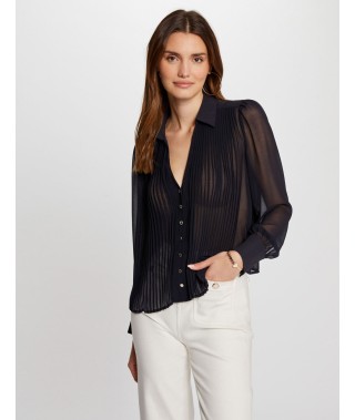 Camisa manga larga pliegues marino mujer