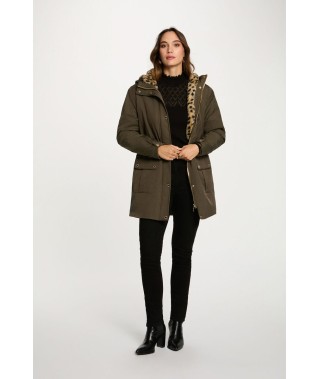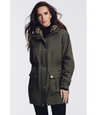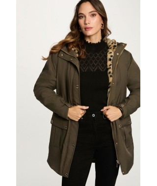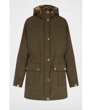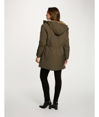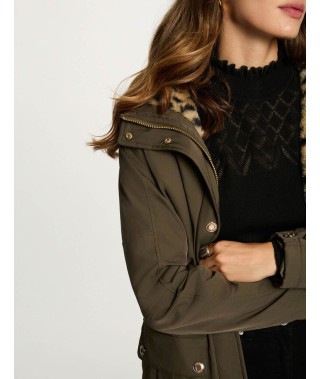 Esta parka larga y recta alarga la silueta con elegancia. La piel sintética añade un toque femenino y moderno, perfecto para un estilo casual chic. El cordón ajustable permite definir delicadamente la cintura, mientras que su cierre de cremallera y sus botones estructuran el conjunto con modernidad.