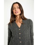 Vestido de punto con cuello en v gris oscuro mujer