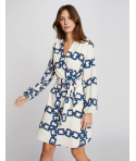 Camisa de manga larga de color marfil y estampado de cadena. Corte recto y escote en V. Cierre de botones en la parte delantera. Fruncidos en los hombros y puños abotonados.